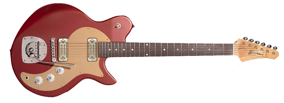 Second, the pickup selector switch moved higher on the body to remain accessible when your arm is resting on the guitar—the original placement meant the tremolo arm would block access to the switch.